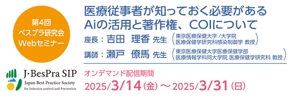 - 2024/03/04第2回日本感染管理ベストプラクティス研究会セミナー 2024年5月25日(土)開催